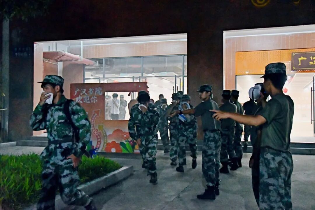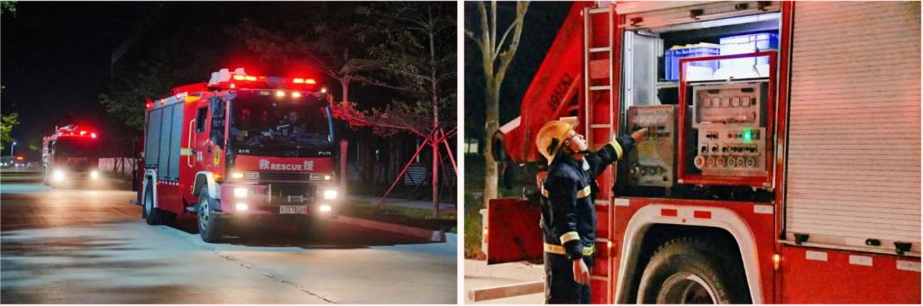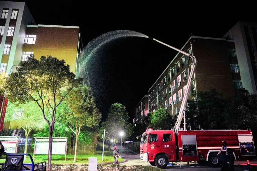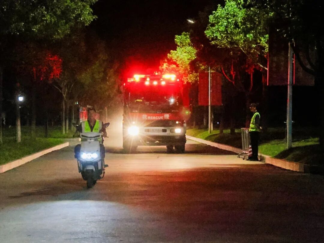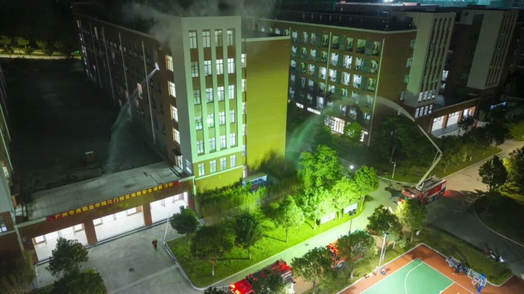 消防控制室值班人员立即通知宿管员确认火情,综合办公室值班人员《根据广州华商职业学院突发事件应急预案》,立即启动应急预案响应机制。各部门迅速联动,消防员、保安第一时间赶赴现场建立警戒区域,校医在预设集结区域严阵以待。