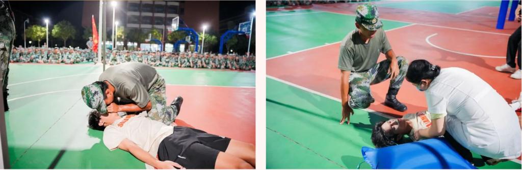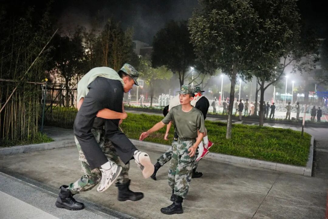 演练中还特别设置了模拟伤情救援环节,两名学生在楼梯间模拟不慎摔伤和吸入浓烟导致身体不适,同行学生发扬互助精神,背起伤者一同撤离,校医迅速响应,展示了专业的医疗应急能力。
