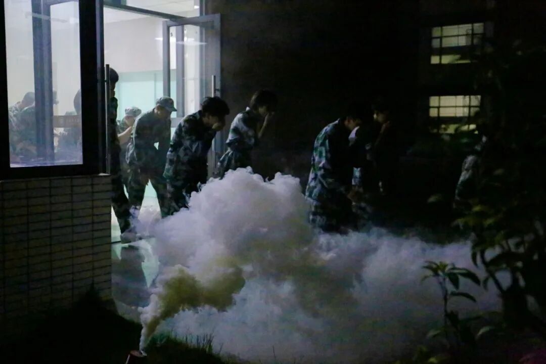 晚上8时30分,随着演练总指挥、副校长孙虎一声令下,消防疏散实战演练在6号楼正式展开。演练模拟了6号楼A座623宿舍突发火情的场景,随着烟雾弹的投放,浓烟迅速弥漫,火警铃声刺破夜空。
