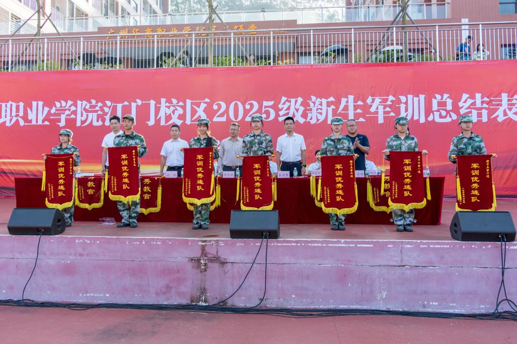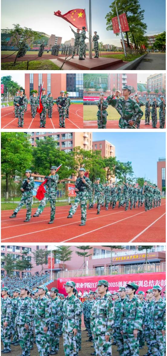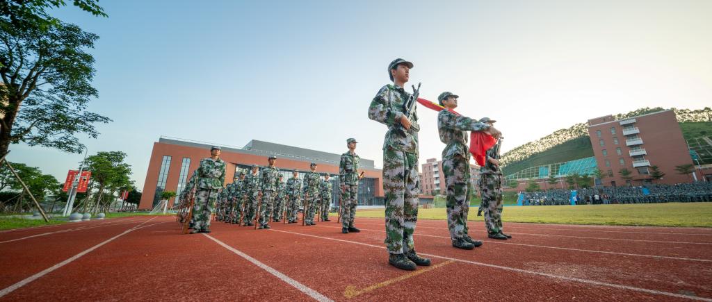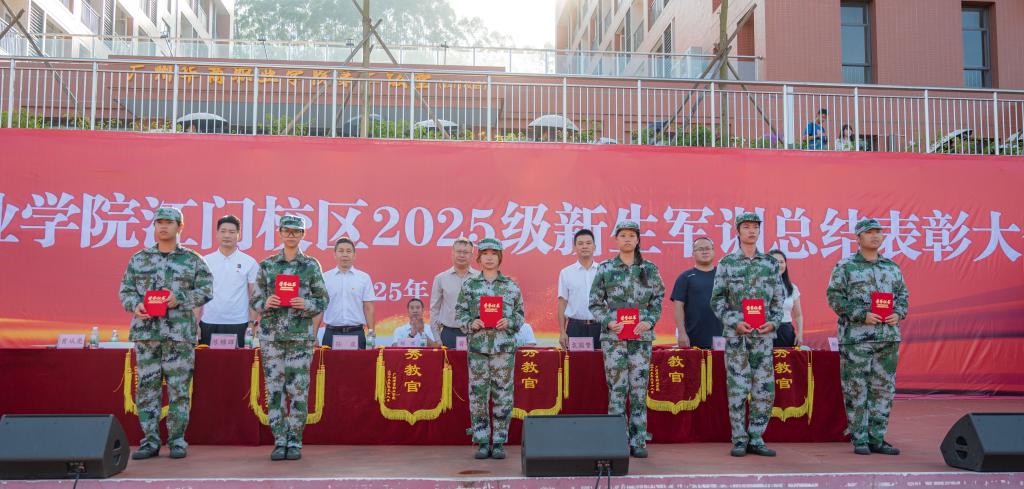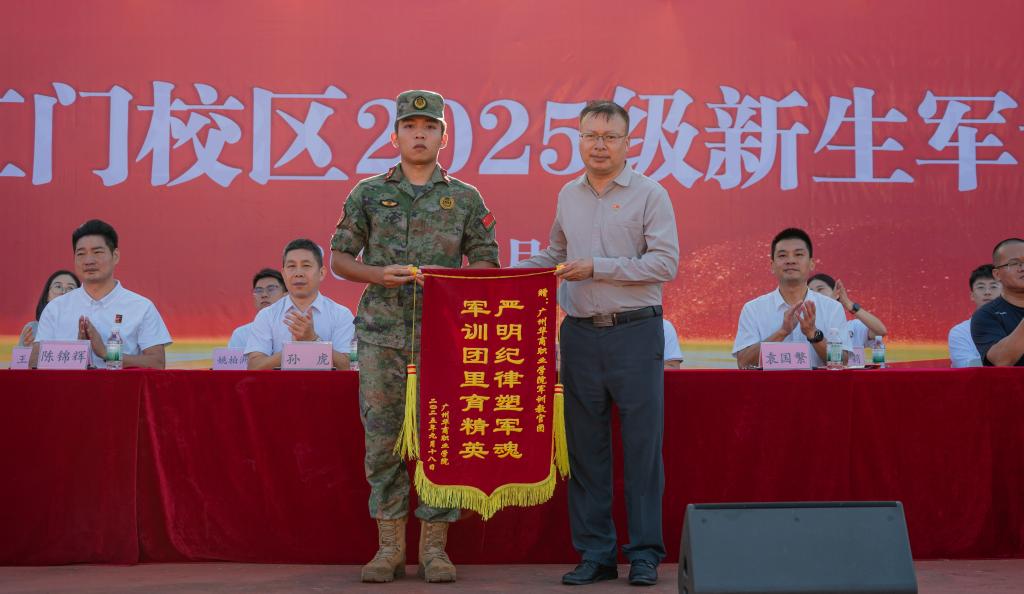 秋风送爽,沙场点兵。9月18日上午,广州华商职业学院江门校区2025级学生军训总结表彰大会在田径场进行。学校党委书记翁礼成、常务副校长袁国繁、副校长孙虎,职能部门负责人、二级学院专职书记或副书记,新生辅导员、全体教官及全体2025级学生出席大会,大会由学务部副部长黄从亮主持。