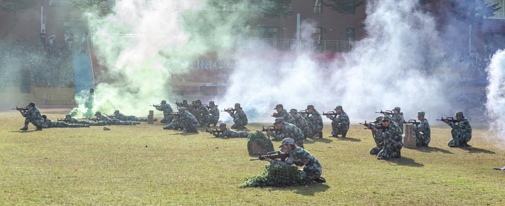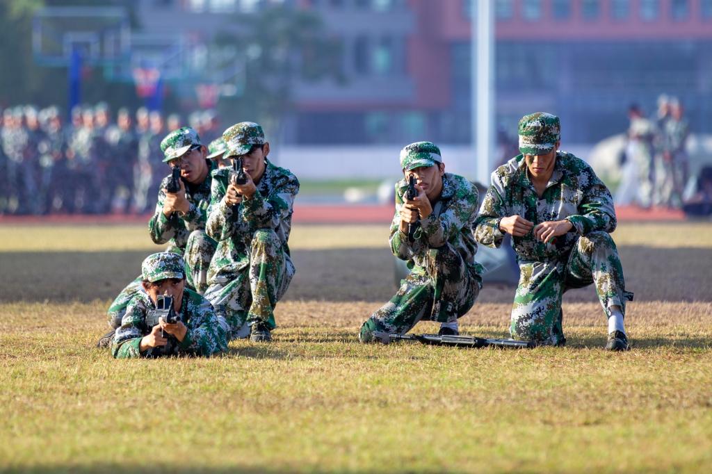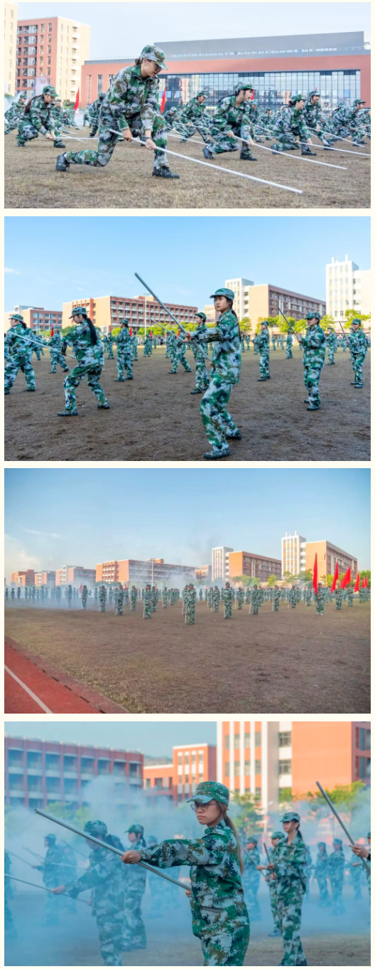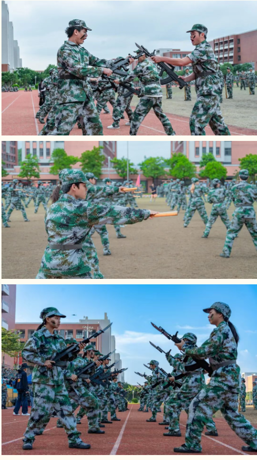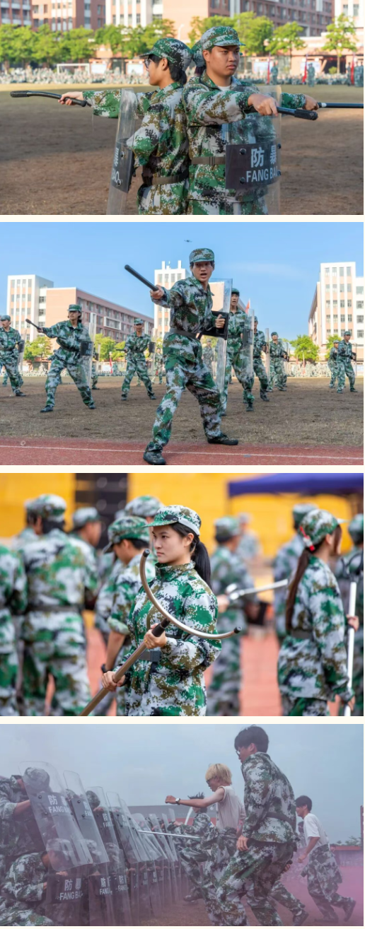 经过14天的反复练习磨合,参训学生们已熟练掌握军体拳、应急棍、擒敌拳、匍匐拳、刺杀操、匕首操、防暴队形、大刀操、战术基础8项军事科目,并在汇报表演中配合默契、动作迅捷,将实战化训练成果淋漓展现。