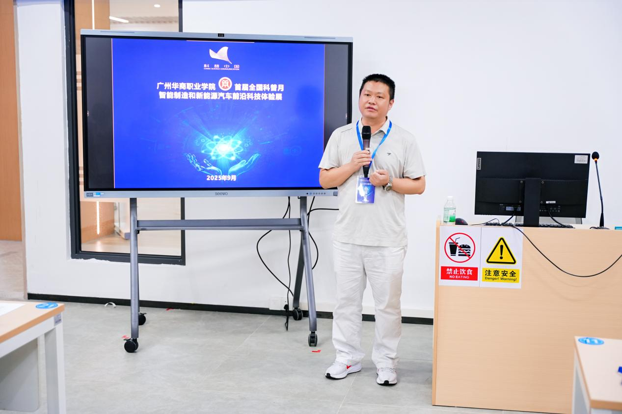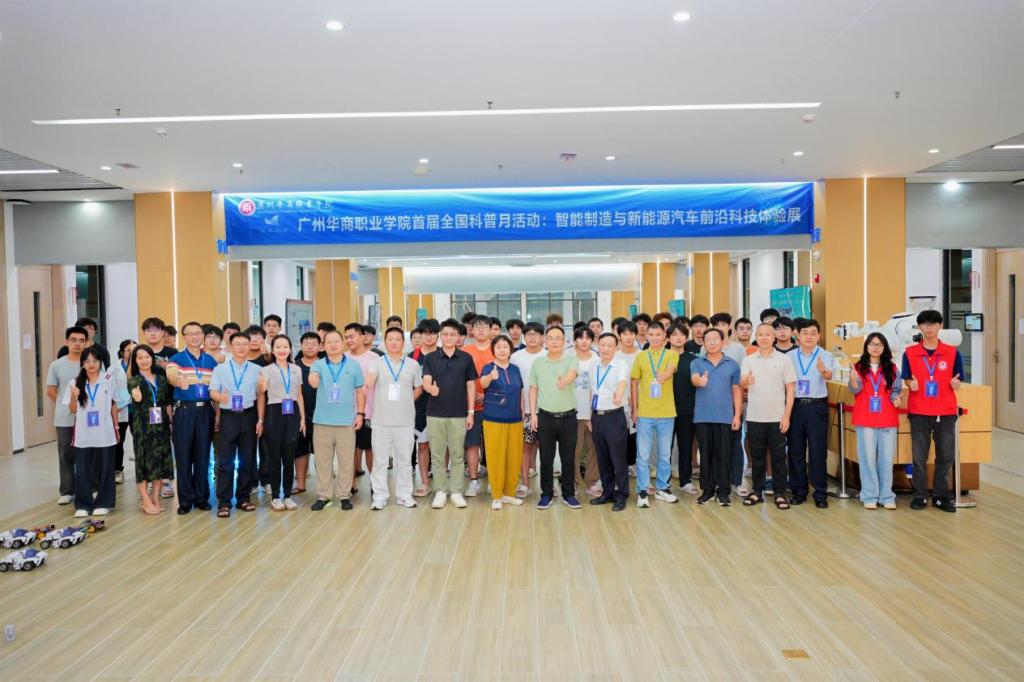 为响应全国科普月号召,推动科技创新与科学普及协同发展,9月20日下午,广州华商职业学院联合增城经济技术开发区科技创新局、增城区科学技术协会,以“智享科技·绿动未来”为主题,成功举办“智能制造与新能源汽车前沿科技体验展”。活动通过“权威讲座+沉浸式体验+云端研学”的多元形式,吸引百余名师生、市民及科技爱好者参与,共赴一场科技与绿色交融的科普盛宴。