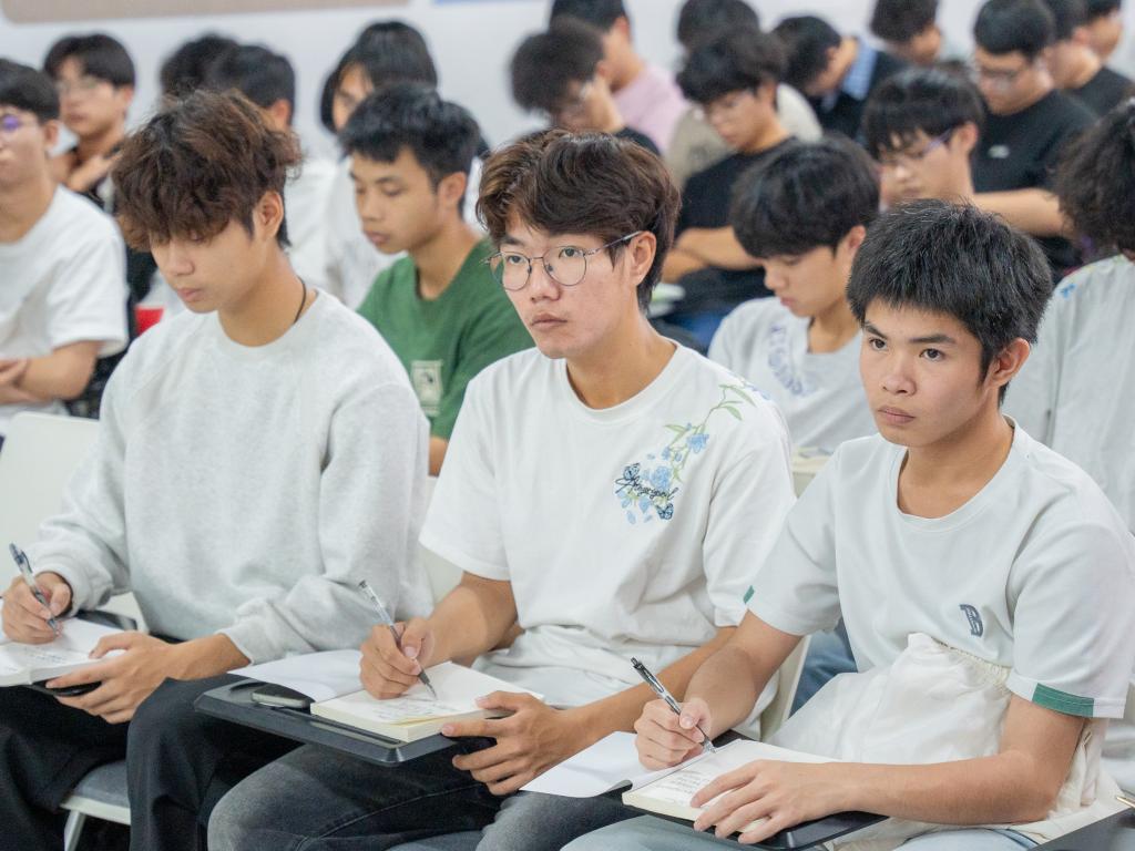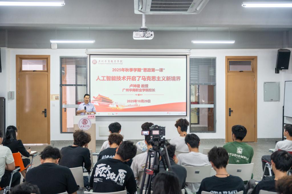 根据《广东省教育厅关于做好2025年秋季学期大中小学校党组织书记、校长上第一堂思政课工作的通知》要求,10月29日,校长卢坤建教授以“人工智能开启马克思主义新境界”为题,为2025级新能源2班、3班百余名新生讲授“思政第一课”。