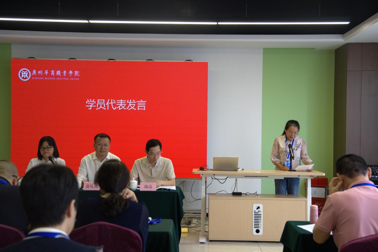 学员代表钟云香老师表示,要在培训过程中全力以赴地汲取专业知识,为蕉岭县的心理健康教育事业奉献自己的一份坚实力量,以回报广州华商职业学院的帮扶。