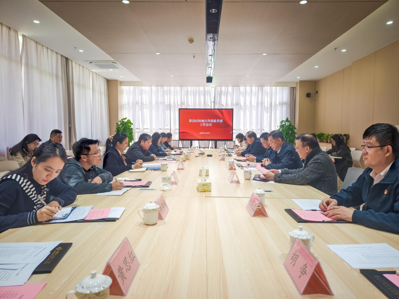 新会区委常委、宣传部部长兼区委教育工委书记何淑娴,新会区教育局党组书记、局长陈伟端,区委宣传部副部长黄金杏,崖门镇党委委员苏锡斌,团区委副书记农雪婷,广州华商职业学院党委书记翁礼成,广州软件学院党委书记刘友坤,广州华立学院党委书记李琼生,广东南方职业学院党委书记廖葵中等领导以及新会区委宣传部、团区委、区教育局及四所民办高校的党政负责同志参加会议。会议由翁礼成主持。