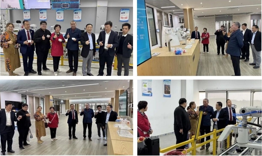 会后在祝常红等的陪同下,Izmukhamedov Mirsat一行参观了学校人工智能实训基地。从智能装备操作演示到实训课程体系介绍,从校企共建实训平台到技能人才培养成果展示,来宾们细致考察了基地的硬件设施配置、实训教学模式创新及产教融合实践成效,对学校将行业技术标准深度融入实训教学、以实践能力培养为核心的育人理念给予高度赞赏,为后续校企协同育人、技术联合攻关等合作寻找精准切入点。
