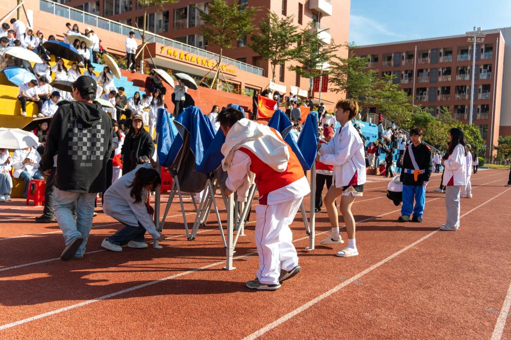 大型活动组、宣传组、场地器材组、后勤安保组等各个工作机构的师生们,同样功不可没。从开幕式彩排的精心策划、反复磨合,到场地设施的布置维护、宣传报道的及时跟进,再到现场秩序的维持、医疗保障的到位,他们坚守岗位,确保了运动会每一个环节的顺利进行。无数个日夜的筹备,无数次细节的推敲,才有了赛场上的井然有序与精彩纷呈。各二级学院也高度重视,院领导亲自参与组织协调,领队、教练员悉心指导,学生们积极投入训练和备赛,共同构成了运动会最坚实的后盾。