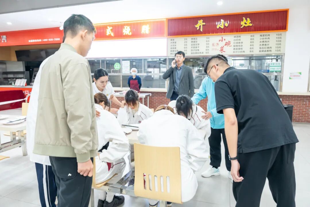 座谈结束后,活动迎来了温馨的收尾环节——“南北风味,菜肴共鉴”。校领导与师生代表一同返回第一饭堂,共同品尝饭堂近期推出的新式菜肴。