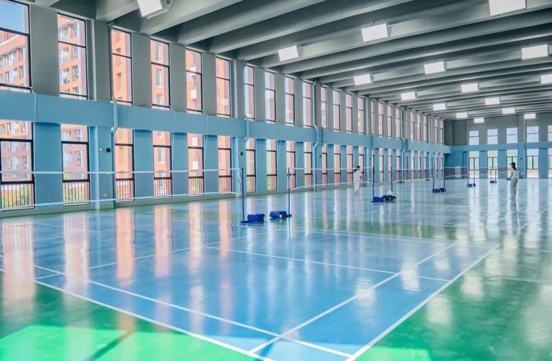 羽毛球馆位于体育馆2楼内,设有7个标准场地,师生可以在安全舒适的环境中尽情挥拍。
