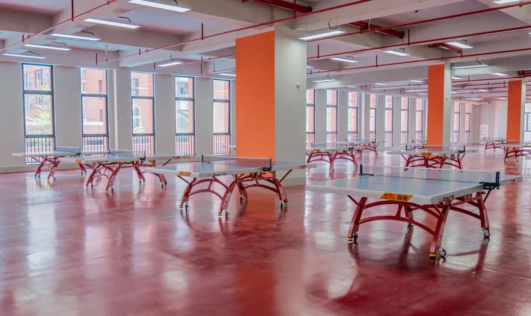 乒乓球馆配备16张标准乒乓球台,场地宽敞明亮,师生可以在这里自由切磋球技,享受运动乐趣。