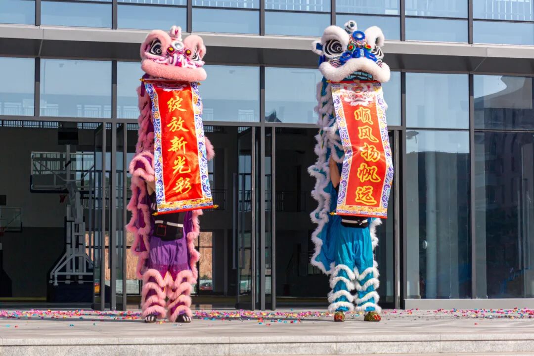 鼓点阵阵,锣声喧喧;醒狮腾跃,献瑞纳福。廖榕就董事长与陈练瑛董事共同为舞狮点睛。威武的醒狮点睛纳福,寓意华商事业吉祥昌隆,迈向新的辉煌。