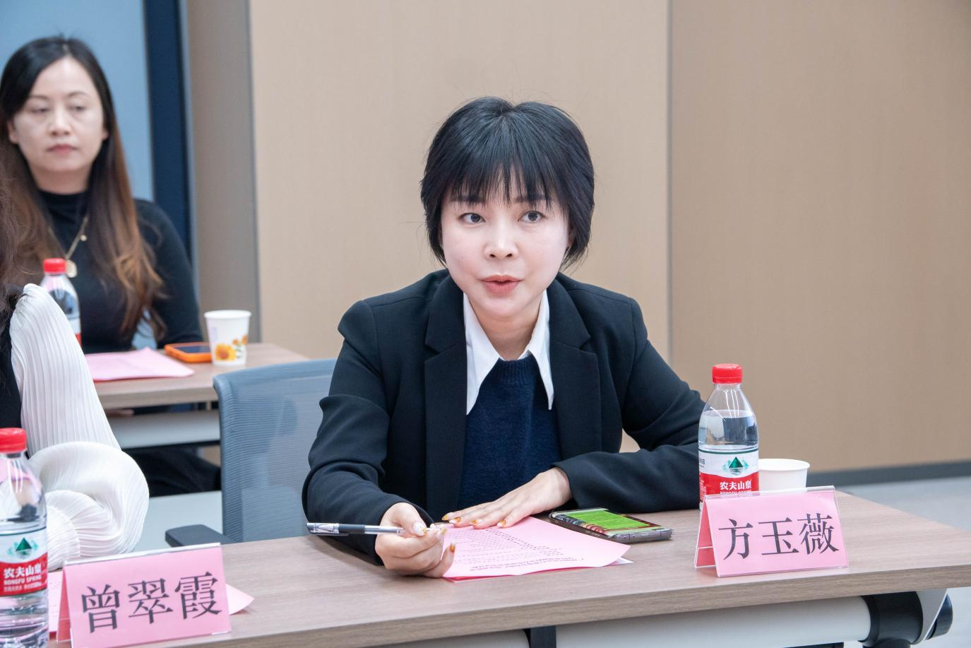 随后,考察团于弘美楼306会议室参加校企合作座谈会。会上,广州华商职业学院酒店管理与厨艺学院院长、广州太阳城大酒店总经理林红梅,酒店管理与数字化运营专业教研室主任曾瑞老师分别分享了酒店管理及厨艺专业的建设成果、师资力量配备及产教融合的实践经验。林红梅指出,学校始终以行业需求为导向,通过与企业共建实训基地、共同开发课程体系、企业导师进校园等方式,着力培养具备扎实专业技能和良好职业素养的应用型人才,多年来已为酒店行业输送了大批优秀毕业生,不少学子已成长为企业骨干力量。现场播放的学生产教融合实践风采视频,生动展现了学子们在实习岗位上的专业表现和服务风采,引发参会单位的广泛共鸣。